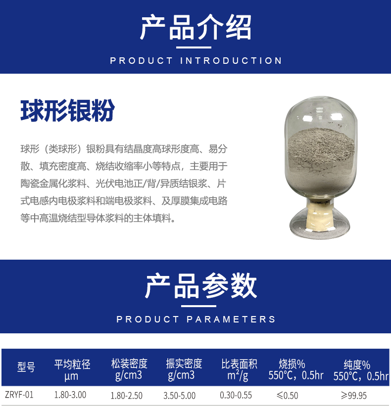 球形(類球形)銀粉具有結(jié)晶度高球形度高、易分散、填充密度高、燒結(jié)收縮率小等特點(diǎn),主要用于陶瓷金屬化漿料、光伏電池正/背/異質(zhì)結(jié)銀漿、片式電感內(nèi)電極漿料和端電極漿料、及厚膜集成電路等中高溫?zé)Y(jié)型導(dǎo)體漿料的主體填料。